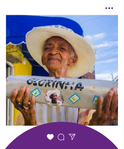 Maria da Glória Braz de Almeida, conhecida como Dona Glorinha, foi uma das grandes mestras do coco de roda e referência eterna da cultura popular de Olinda. Nascida no Amaro Branco em 1934, neta de pessoas escravizadas, teve sua trajetória profundamente ligada ao Coco Olindense, expressão de identidade, ancestralidade e resistência cultural. Guardiã da tradição oral e formadora de gerações, atuou como liderança cultural e educadora comunitária, fortalecendo o protagonismo das mulheres e a autoestima das comunidades. Seu legado permanece vivo na memória e na prática dos brincantes que mantêm o coco pulsando em Pernambuco.